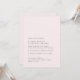 Cette élégante invitation de mariage présente un design simple et délicat dans une couleur rose rose douce, parfait pour un événement romantique et sophistiqué. Les subtiles tonalités rousses apportent une touche de féminité et de charme, ce qui en fait l'endroit idéal pour un thème mariage classique et intemporel. Avec sa palette de couleurs douces et son esthétique romantique, cette invitation donne le ton d'une belle et mémorable célébration de l'amour.