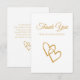 Une simple carte plate de remerciement de mariage à double cœur de couleur or que vous pouvez personnaliser avec un message spécial de remerciement. Parfait pour les mariages et les anniversaires.