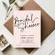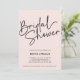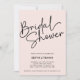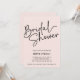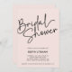 Invitations minimalistes de douches nuptiales avec "Fête des mariées" en haut à gauche, présentées dans un script de calligraphie noir contre un arrière - plan rose vif. Customisez les invitations à la douche nuptiale rose avec le nom de la future mariée et les détails de la fête de la douche ci-dessous. L'invitation de douche nuptiale contemporain peut être retourné pour révéler un arrière - plan rose solide. Version verticale