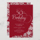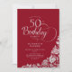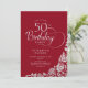 Simple et élégante invitation à la fête du 50e anniversaire en rouge et argent. Design classique avec rose, faux feuille argent et police de script de typographie. Carte invitation tendance parfaite pour une célébration anniversaire élégante. Personnalisez avec vos propres détails. Peut être customisé à n'importe quel âge. Invitations Zazzle imprimées ou téléchargement instantané modèle imprimable numérique.