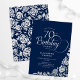 Simple et élégante invitation de fête de 70e anniversaire en marine et argent. Design classique avec rose, faux feuille argent et police de script de typographie. Carte invitation tendance parfaite pour une célébration anniversaire élégante. Personnalisez avec vos propres détails. Peut être customisé à n'importe quel âge. Invitations Zazzle imprimées ou téléchargement instantané modèle imprimable numérique.