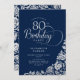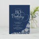 Invitation Simple élégant 80e anniversaire Marine Roses d'arg
