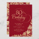 Invitation Simple élégant 80e anniversaire Roses d'or rouge