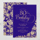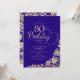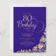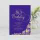Simple et élégante invitation de fête de 80ème anniversaire en violet et or. Design classique avec rose, faux feuille d'or et police de script de typographie. Carte invitation tendance parfaite pour une célébration anniversaire élégante. Personnalisez avec vos propres détails. Peut être customisé à n'importe quel âge. Invitations Zazzle imprimées ou téléchargement instantané modèle imprimable numérique.