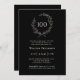 Une invitation à fêter 100 ans de bon goût et classique, cette invitation noire au texte écru beige exprime une élégance simple dans sa disposition et son style de texte. Une couronne de laurier ouverte de feuilles esquissés entoure l'âge en haut de l'invitation. Le modèle de texte élégant et simple travaille pour n'importe quel honneur de genre et est prêt à personnaliser avec vos détails de l'événement. D'autres couleurs sont disponibles. Vous pouvez également modifier l'âge à n'importe quel autre âge pour travailler avec votre célébration spéciale.