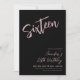 Invitation Simple Elégant Noir Blush Rose Sweet 16 Script
