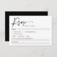 Moderne simple élégant noir et blanc chic mariage rsvp avec choix alimentaires, allergies, exigences alimentaires et choix de chanson.