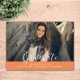 Simple Elegant Graduation Faire-part avec un design épuré et simple en orange. Ajoutez une photo et les détails de graduation pour customiser. La couleur de l'Arrière - plan à l'arrière de l'invitation peut être modifiée pour compléter la photo ou pour ajouter une couleur de l'école.