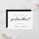 Carte de proposition de parrainage marraine simple et élégante avec une typographie noire « serez-vous ma marraine ». Cette proposition de parrainage a un style minimaliste et moderne en noir et blanc, avec un fond de couleur noire éditable au verso de la carte.