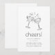 Célébrez toute occasion joyeuse avec notre modèle d'invitation élégant. En haut, deux dessins au trait simple de verres à champagne s'entrechoquent pour un toast, symbolisant l'amour et l'excitation de ce moment spécial. En dessous, il y a suffisamment de place pour inclure tous les détails essentiels de la fête, ce qui permet aux invités de noter facilement l'heure, la date et le lieu de votre célébration. Ce design sophistiqué est le moyen idéal pour inviter vos amis et votre famille à se joindre à vous.