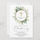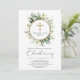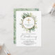 Célébrez le baptême de votre enfant avec cette élégante invitation botanique à thème avec l'élégante aquarelle vert eucalyptus en vert et or
