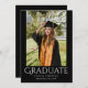 Simple Graduation Stylish Modern Grad Party Photo Faire-part Party Invitation présente votre photo de grade préférée au-dessus du texte élégant mais simple "Graduate" dans la typographie de script de calligraphie moderne. Au verso, ajoutez les détails de votre fête de remise des diplômes. Disponible en tant qu'invitation physique à la remise des diplômes en papier et en tant que téléchargement numérique instantané partageable et téléchargeable. Conçu par Evco Studio www.zazzle.com/store/evcostudio