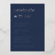 Simple Navy Blue Mariage Foil Invitation, s'il vous plaît personnaliser l'avant de l'invitation avec le nom du couple, la date et l'heure du mariage et l'emplacement du mariage (ou autre libellé de votre choix), en utilisant le modèle de personnalisation en ligne avant de commander. Cette conception d'invitation présente de beaux textes en feuille métallique sur l'avant, dans une disposition simple et minimaliste. L'arrière - plan pour l'avant de la carte est bleu marine ; l'arrière de la carte est également bleu marine. La conception est rapide et facile à personnaliser et peut être utilisée pour un mariage ou un autre type d'événement de célébration planifié comme l'anniversaire, l'anniversaire ou la réunion de famille en personnalisant selon vos besoins.