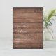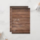 Invitation de mariage rustique simple avec les noms des heureux mariés inscrits dans un élégant script au-dessus des détails spéciaux du mariage sur un fond en bois rustique. Le verso présente un fond en bois rustique assorti. Conçu par Thisisnotme©