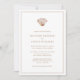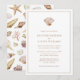 Invitation de mariage simple sur la plage. Unique et élégante, cette invitation de mariage moderne sur la plage présente de beaux coquillages peints à la main, du corail et des étoiles de mer dans des tons neutres terreux. Le texte est beige et le fond est blanc. Le dos comprend un motif fantaisiste de coquillages. Trouvez des articles assortis dans la collection de mariage sur la plage Watercolor Seashell.