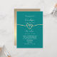 Invitation de mariage simple, élégante et minimaliste de couleur vert turquoise avec un cœur de corde dorée fausse romantique et une écriture calligraphique moderne.