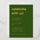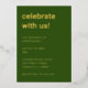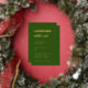 Simple Forest Green Mariage Foil Invitation, s'il vous plaît personnaliser l'avant de l'invitation avec le nom du couple, la date et l'heure du mariage et l'emplacement du mariage (ou autre libellé de votre choix), en utilisant le modèle de personnalisation en ligne avant de commander. Cette conception d'invitation présente de beaux textes en feuille métallique sur l'avant, dans une disposition simple et minimaliste. L'arrière - plan pour l'avant de la carte est "vert forêt" couleur; l'arrière de la carte est "vert forêt" également. La conception est rapide et facile à personnaliser et peut être utilisée pour un mariage ou un autre type d'événement de célébration planifié comme l'anniversaire, l'anniversaire ou la réunion de famille en personnalisant selon vos besoins.