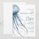 Une méduse simple et moderne aquarelle bleue encadre cette invitation d'anniversaire côtière. Une combinaison tendance de typographie script moderne et de polices sérif droites complète l'ambiance décontractée.