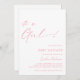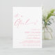Jolie et simple invitation à la douche bébé avec "c'est une fille !" texte en script, avec de mignons détails de coeur dessinés à la main. Police rose vif sur un arrière - plan blanc immaculé. REMARQUE : N'oubliez pas de personnaliser (ou de supprimer) le modèle de texte au verso de cette carte.