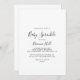 Cette simple invitation minimaliste à l'arrosage de bébé est parfaite pour un baby shower moderne. Le design sobre et élégant présente une typographie de script classique et sophistiquée en noir et blanc.