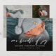 This modern, stylish birth announcement has script copy saying "our bundle of joy" on top of the photo with a white gradient for the copy below. Add your newborn baby's name and all the info you want. On the back, add 3 additional photos. The announcement is for either a boy or girl.