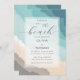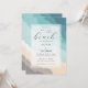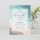 Un modèle d'invitation de mariage de plage qui présente une scène d'aquarelle peinte et abstraite d'une plage côtière et l'océan et la calligraphie moderne pour le titre : "sur la plage". Classique et élégant, simple et moderne, il est un choix agréable pour un mariage d'été, un mariage d'escalier ou un mariage de plage.