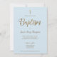 Invitation Simple moderne Croix Bleue Or Baptême