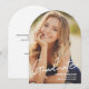 Personnalisez cette carte moderne à arc plat de faire-part de graduation avec la photo, le nom, l'année de cours et le nom de l'école de votre diplômé. Inclure un message spécial au verso, votre adresse de retour et d'autres détails. Typographie de police de script moderne, élégant et chic. Partagez votre enthousiasme à la famille et aux amis sur l'accomplissement de votre grade.