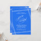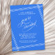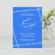 Simple et élégant avec une touche contemporaine, cette invitation de fête de retraite présente des lignes blanches en angle encadrant votre texte sur un fond bleu cobalt tendance. Le texte "vous êtes invité" dans de belles fioritures de script est intentionnellement mis en avant pour faire sentir vos invités spéciaux. Modifiez les détails de la fête avec vos spécificités. Montré ici comme une célébration de fête de retraite, vous pouvez modifier ce texte pour n'importe quelle occasion ! L'invitation peut être commandée imprimée et/ou téléchargée numériquement sans papier pour votre commodité.