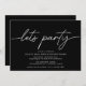Invitations d'anniversaire simples et modernes avec en-tête le texte "Faisons la fête" dans le script. Ajoutez les détails de votre événement ci-dessous. Texte blanc sur un arrière - plan noir.