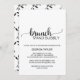 Ce simple brunch en calligraphie noire et cette carte d'invitation à la bulle est parfait pour une douche nuptiale à thème rustique ou moderne. Le design minimaliste est doté d'une police de caractères élégante et d'un coeur féminin. Le support est composé d'un motif classique à feuilles et branches.