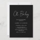 Invitation de baby shower noir moderne avec un design simple avec "Oh Baby" dans un style rustique typographie script. Cette élégante invitation sans distinction de genre avec un agencement minimaliste est idéale que vous ayez un garçon ou une fille.