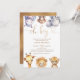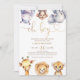 Douce et simple invitation de baby shower sur le thème des animaux de safari pour garçon, avec un titre en faux foil cuivre et six animaux de safari. Idéal pour ceux qui cherchent une invitation de baby shower simple et moderne sur le thème des animaux de safari pour garçon.