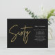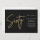 Simple Black and Gold Parties scintillant 60th Birthday Invitation présente un design contemporain et sobre avec une feuille d'or "Sixty" en écriture manuscrite. Contre un arrière - plan noir, il dégage un sentiment de minimalisme et d'élégance moderne. Cette invitation est le choix idéal pour les hommes et les femmes qui célèbrent cette importante étape adulte, offrant une grande surprise pour votre 60e anniversaire avec tous vos détails essentiels de fête élégamment présenté.