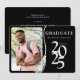 Cette invitation moderne et élégante de graduation en noir et blanc présente une photo du diplômé et peut être customisée pour compléter leurs couleurs scolaires ou le thème de graduation. Retournez la carte et utilisez les outils de conception pour mettre à jour votre texte. Aussi disponible en téléchargement numérique.