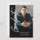 Simple Photo moderne Black Script Graduation Party avec un cadre pour votre photo, nom de diplômé et classe d'université, et modèle pour les détails de la fête au dos de la carte. Le design minimal est idéal pour un type diplômé de l'université ou du collège. Accédez à la section Personnaliser le modèle pour ajouter vos informations et votre photo Choisissez entre des impressions et/ou un téléchargement numérique. Design original par Ana Garza/Kardz Studio Designs. N'hésitez pas à me contacter par l'intermédiaire du Conversation Zazzle si vous avez des questions.