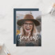 Une simple carte postale moderne de déclaration de fin d'études avec un texte manuscrit pour votre remise de diplôme de lycée ou d'université. Ajoutez votre propre photo élégante. Photo avec texte de fin d'études et superposition de typographie blanche sur la photo.