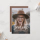 Une simple carte postale d'annonce de photo de diplômé de style moderne pour votre remise de diplôme de lycée ou d'université. Ajoutez votre propre photo élégante. Photo avec texte de diplômé en écriture cursive, et typographie blanche superposée sur la photo.