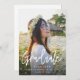 Une simple carte postale d'annonce de photo de diplômé de script moderne pour votre diplôme d'études secondaires ou universitaires. Ajoutez votre propre photo élégante. Photo avec libellé de diplômé de script et superposition de typographie blanche sur la photo. Motif boho au dos de l'invitation.