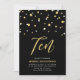 Célébrez votre jour spécial avec cette invitation simple et minimaliste pour une fête d'anniversaire de 10 ans. Ce design présente un lettrage stylé avec des confettis en forme d'hexagone dans une combinaison de couleurs noir et or. Plus de designs disponibles dans ma boutique BaraBomDesign.