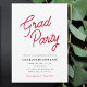 Cette invitation pour une fête de remise des diplômes présente un design simple accentué par un texte manuscrit rouge qui indique "Fête de diplôme". Personnalisée avec tous les détails de votre fête de célébration de remise des diplômes.