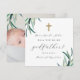Simple et moderne, les feuilles d'aquarelle avec carte de proposition de parrain botanique croix comportent un texte "veux-tu être mon parrain" avec une typographie calligraphique noire sur fond blanc. Cette proposition de parrain a un style minimal rustique, avec une photo de verdure au dos de la carte.