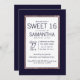 Invitation Simple Rose Gold Lined Marine Bleu Sweet 16 Invita