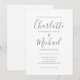 Comprend des noms de style signature, cette invitation de mariage élégante grise et blanche peut être personnalisée avec vos informations en lettrage gris chic. Conçu par Thisisnotme©