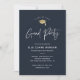 Simple Script Navy Blue Photo Graduation Party invitation avec élégante feuille d'or casquette et typographie minimaliste. Cliquez sur le bouton Modifier pour customiser cette conception. Ajoutez facilement une photo à l'arrière.