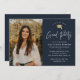 Invitation Simple Script Navy Blue Photo Graduation Party