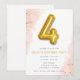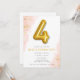 Or simple et doux et rose avec 4 invitations à la fête d'anniversaire design ballon pour le 4ème anniversaire de votre petite fille. Customisez avec les détails de votre fête.