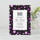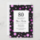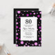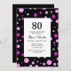 Avec un décor noir chic rehaussé de pois lilas violets, cette invitation fait une déclaration élégante pour votre occasion spéciale. Célébrez un 80ème anniversaire d'étape dans le style et avec charme avec cette invitation unique que les invités seront chérir comme un souvenir de l'événement incroyable.