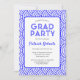 Simplicité moderne Blue Graduation Party Invitation! Célébrez le diplômé en style avec ces invitations à la remise de diplômes art déco moderne! Doté d'un design élégant à thème bleu, il est parfait pour les diplômés du secondaire ou de l'université. Personnalisez avec vos informations. Cet arrière - plan gémotrique bleu accrocheur ajoute une touche unique et festive. Parfait pour faire une déclaration pour cette célébration mémorable !