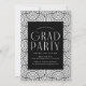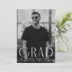 Célébrez le diplômé avec ces invitations élégantes à la fête de remise de diplômes avec une photo verticale du diplômé et "Grad" en blanc, art déco moderne. Personnalisez le front avec le nom du diplômé, l'école et l'année de graduation pour une touche personnalisée. Le dos de l'invitation présente les détails de votre fête contre un arrière - plan géométrique noir et blanc chic, créant un design sophistiqué parfait pour tout diplômé du secondaire ou du collège. Ces invitations minimalistes et élégants sont la meilleure façon d’annoncer la journée spéciale de votre diplômé.
